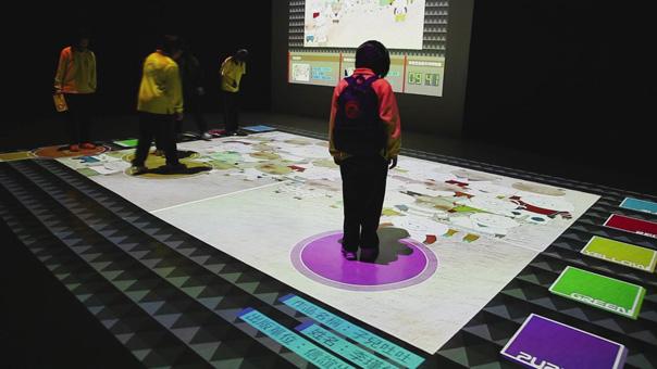 地面互動投影系統(tǒng)采用懸掛在頂部的投影設(shè)備把影像效果投射到地面,當參訪者走至投影區(qū)域時,通過系統(tǒng)識別,參訪者可以直接使用雙腳或動作與投影幕上的虛擬場景進行交互,各種 ……
